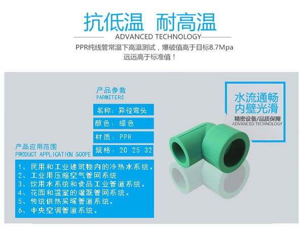 □  管件連接牢固:由于聚丙烯具有良好的熱熔接性能,熱熔連接將同種材料制造的管材和管件連接成為一個整體,杜絕了漏水的隱患。