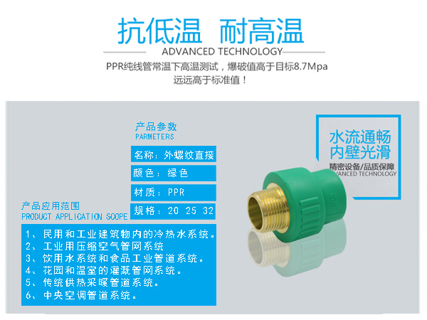 □  耐熱性能好:瞬間使用水溫可達(dá)95℃。在水溫75℃可長(zhǎng)期使用,是一種較理想的室內(nèi)冷熱水管道。